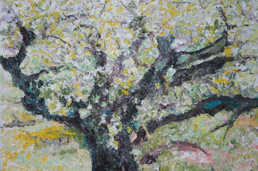 Een knop bloed open Lekkere sappige zoete schone meisjes op takken getilt in wolken wit vet op het doek smeuig in het licht regenboogkleuren schitteren door het hemelblauw een knop bloeid open
